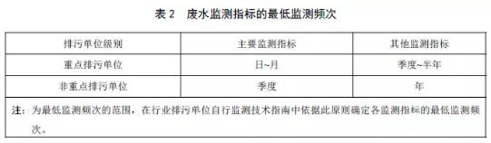 注:為最低監測頻次的范圍,分行業排污單位自行監測技術指南中依據此原則確定各監測指標的最低監測頻次。