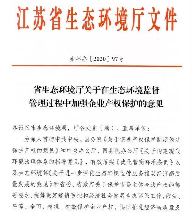 江蘇省生態(tài)環(huán)境廳已發(fā)布了《關(guān)于在生態(tài)環(huán)境監(jiān)督管理中加強企業(yè)產(chǎn)權(quán)保護的意見》,通過不干擾守法企業(yè)保護企業(yè)產(chǎn)權(quán)。免除對標企業(yè),全面禁止環(huán)境保護"一刀切“。