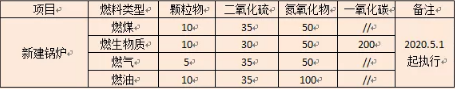 新建鍋爐限值