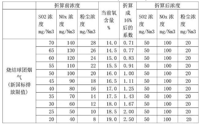 《鋼鐵燒結、球團工業(yè)大氣污染物排放標準》(GB28662-2012)修改單規(guī)定的基準含氧量,自2017年10月1日起執(zhí)行。根據(jù)編制說明,燒結和球團焙燒煙氣基準含氧量定為16%。則鋼廠燒結和球團實測焙燒煙氣的大氣污染物排放濃度,應換算為16%條件下的排放濃度,并以此作為判定排放是否達標的依據(jù)。