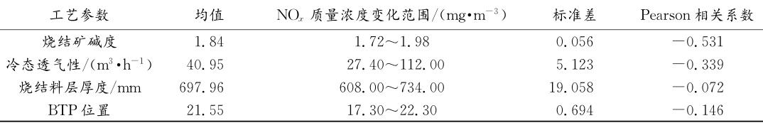二、工藝參數(shù)對(duì)NOx排放的影響規(guī)律燒結(jié)工藝因素重點(diǎn)考察燒結(jié)礦堿度、冷態(tài)透氣性、料層厚度與燒結(jié)終點(diǎn)(BTP)位置4個(gè)參數(shù)對(duì)煙氣NOx排放的影響。相關(guān)性分析結(jié)果列于表4中。