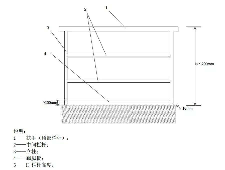 1、距離墜落高度基準面 0.5 m 以上的監測平臺及通道的所有敞開邊緣應設置防護欄桿,防護欄桿的高度應≥1.2 m